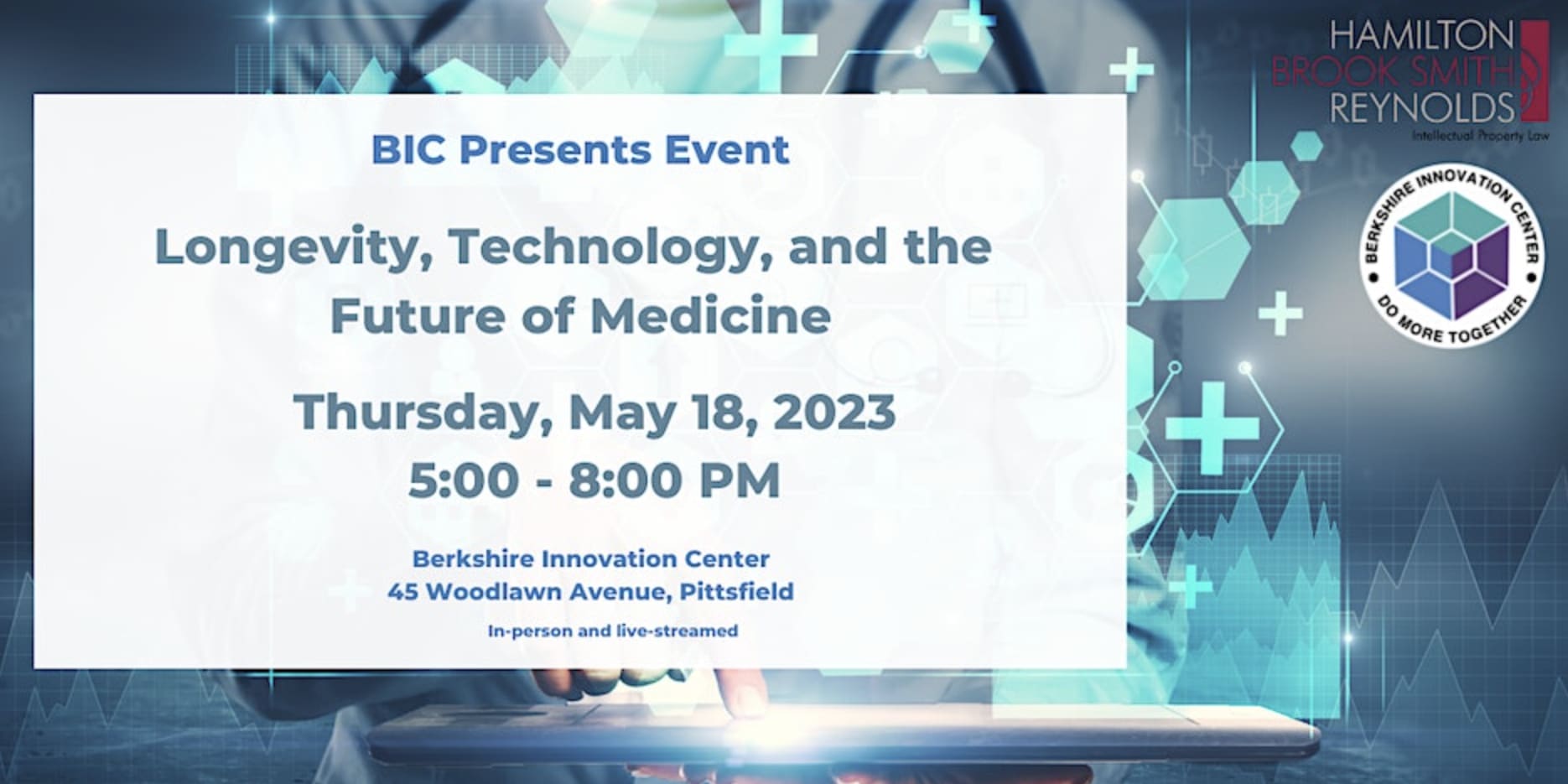 The Berkshire Innovation Center (BIC), in partnership with Hamilton, Brook, Smith, & Reynolds, has announced the next event in their BIC Presents Series. Longevity, Technology, and the Future of Medicine will be held on Thursday, May 18, 2023, at the Berkshire Innovation Center, 45 Woodlawn Ave, Pittsfield. Doors will open at 5:00 PM and the panel discussion will begin at 5:45 PM. The event will also be live streamed via Zoom.