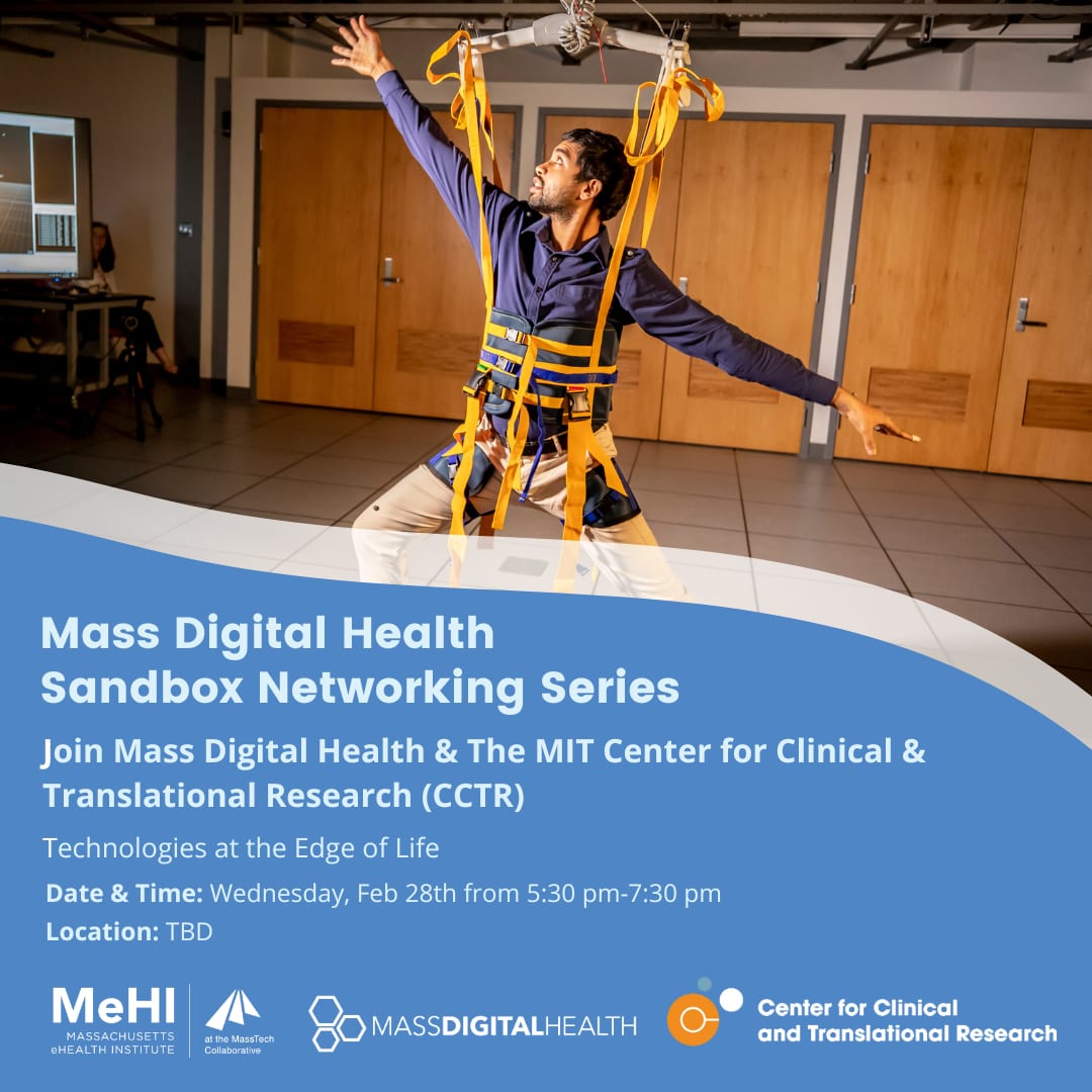 Join MeHI and the MIT Center for Clinical and Translational Research on Wednesday, February 28th from 5:30 p.m. to 7:30 p.m. for "Technologies at the Edge of Life," the third event in the Mass Digital Health Sandbox Networking Series.