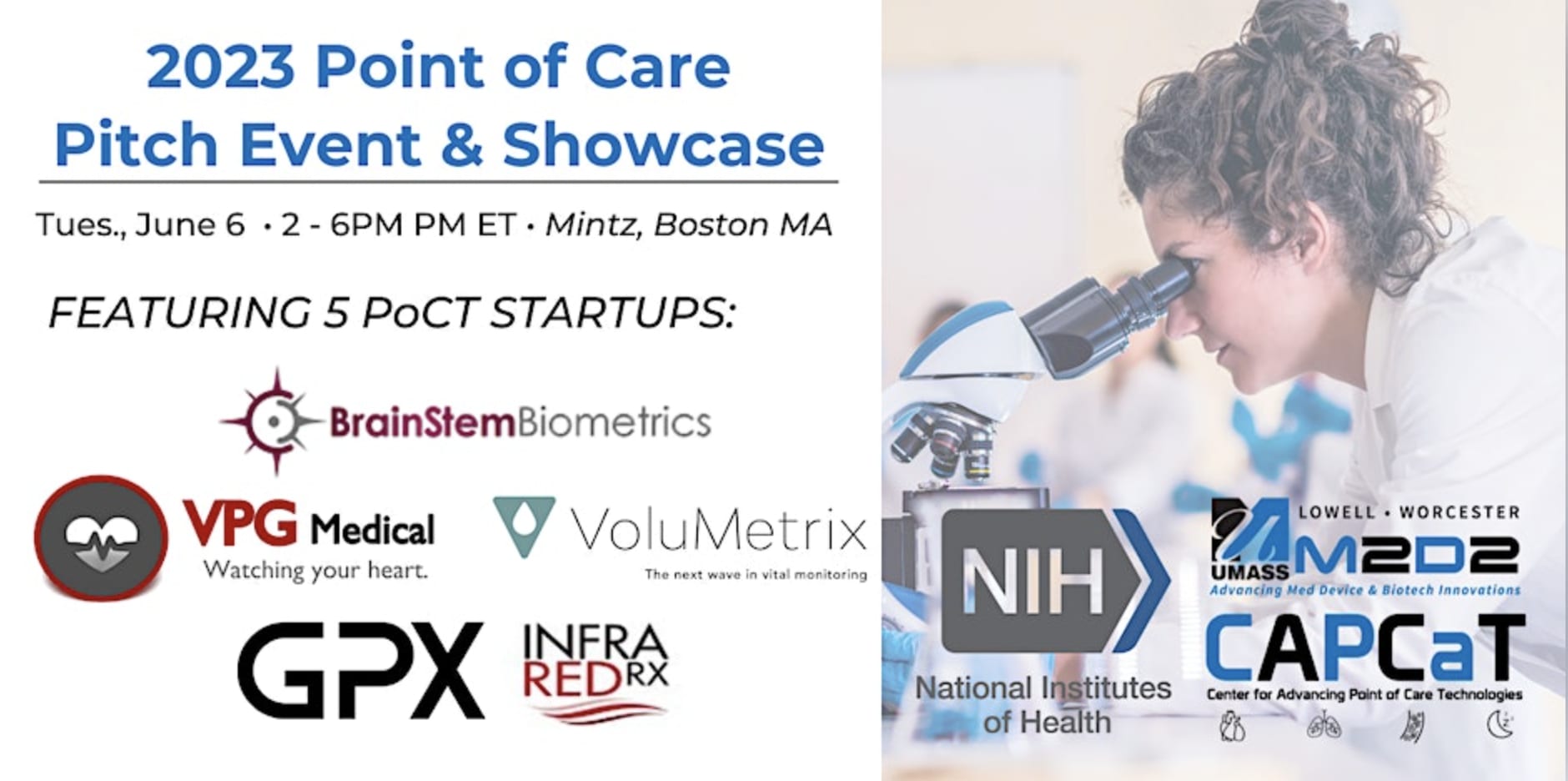 For the 4th consectutive year, The UMass Center for Advancing Point of Care Technologies (CAPCaT) in Heart, Lung, Blood, and Sleep Disorders is pleased to present this high-energy, high-value event for life sciences startups. Join us and open the doors to big company/little company strategic partnerships and grant funding opportunities.