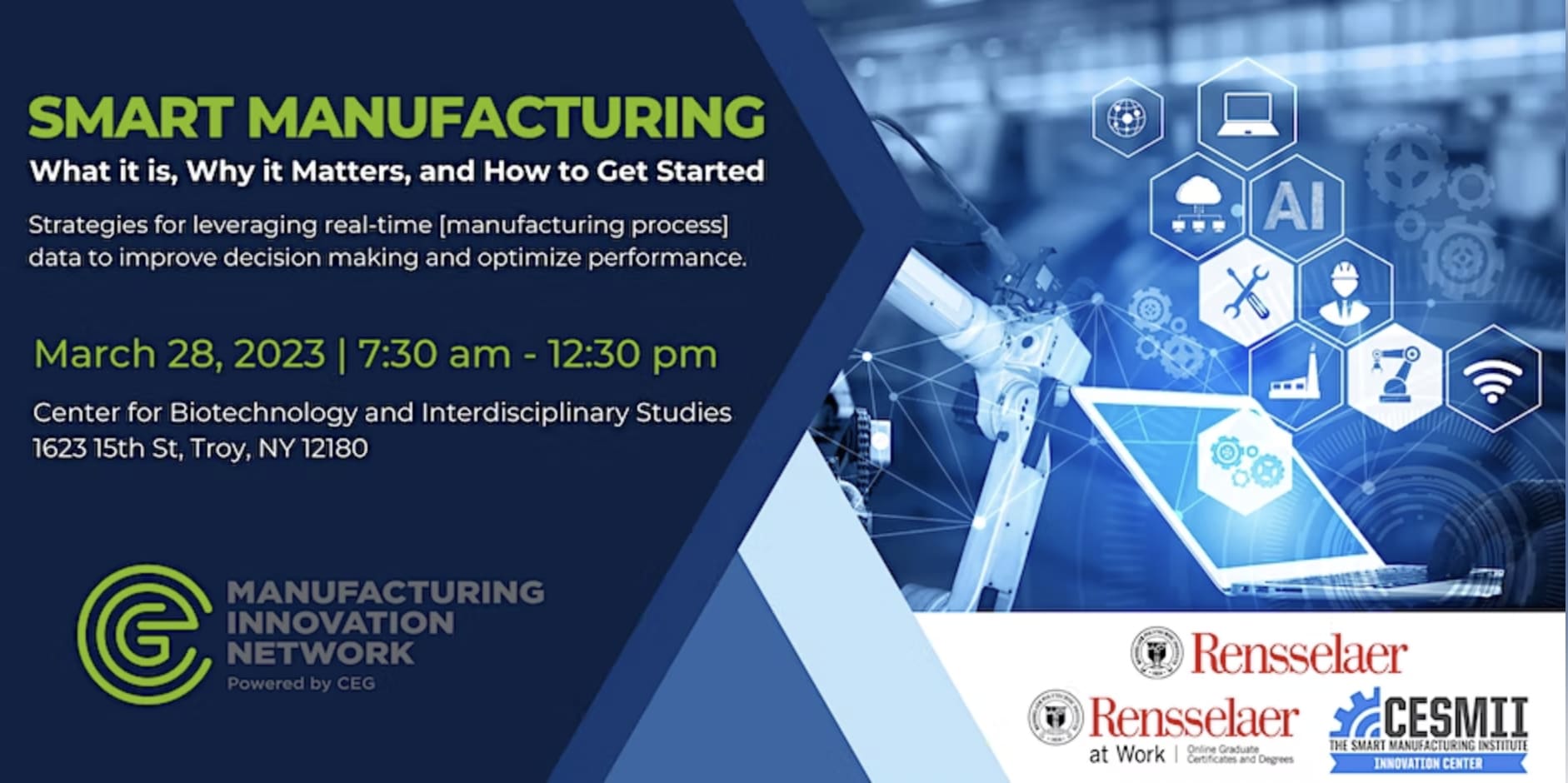 Manufacturing Innovation Network, powered by the Center for Economic Growth, is proud to present the RPI Smart Manufacturing Innovation Center and CESMII – “The Smart Manufacturing Institute”, as their industry experts provide an introductory workshop on Smart Manufacturing and why it is critically important to implement now to secure the future success of your manufacturing operations.